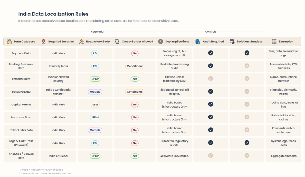 3. Cross-Border Data Deletion (24-Hour Rule): Any customer information for payment transactions MUST be deleted from non-India servers within 24 hours. The clock starts ticking as soon as the data leaves Indian jurisdiction.